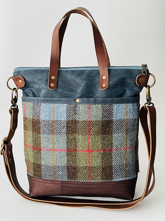 Harris Tweed Crossbody Tote, Blue MacLeod Tartan