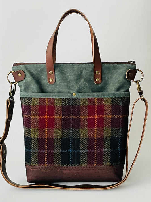 Harris Tweed Crossbody Tote, Hunter Green Herringbone