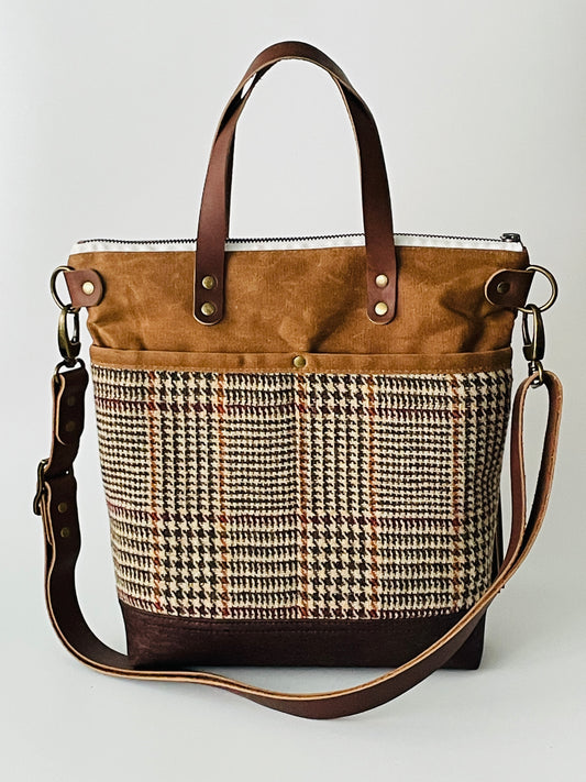 Harris Tweed Crossbody Tote, Brown and Beige Check