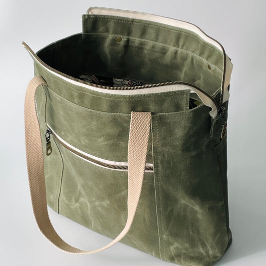 Large Waxed Canvas Zipper Tote, Leaf Green
