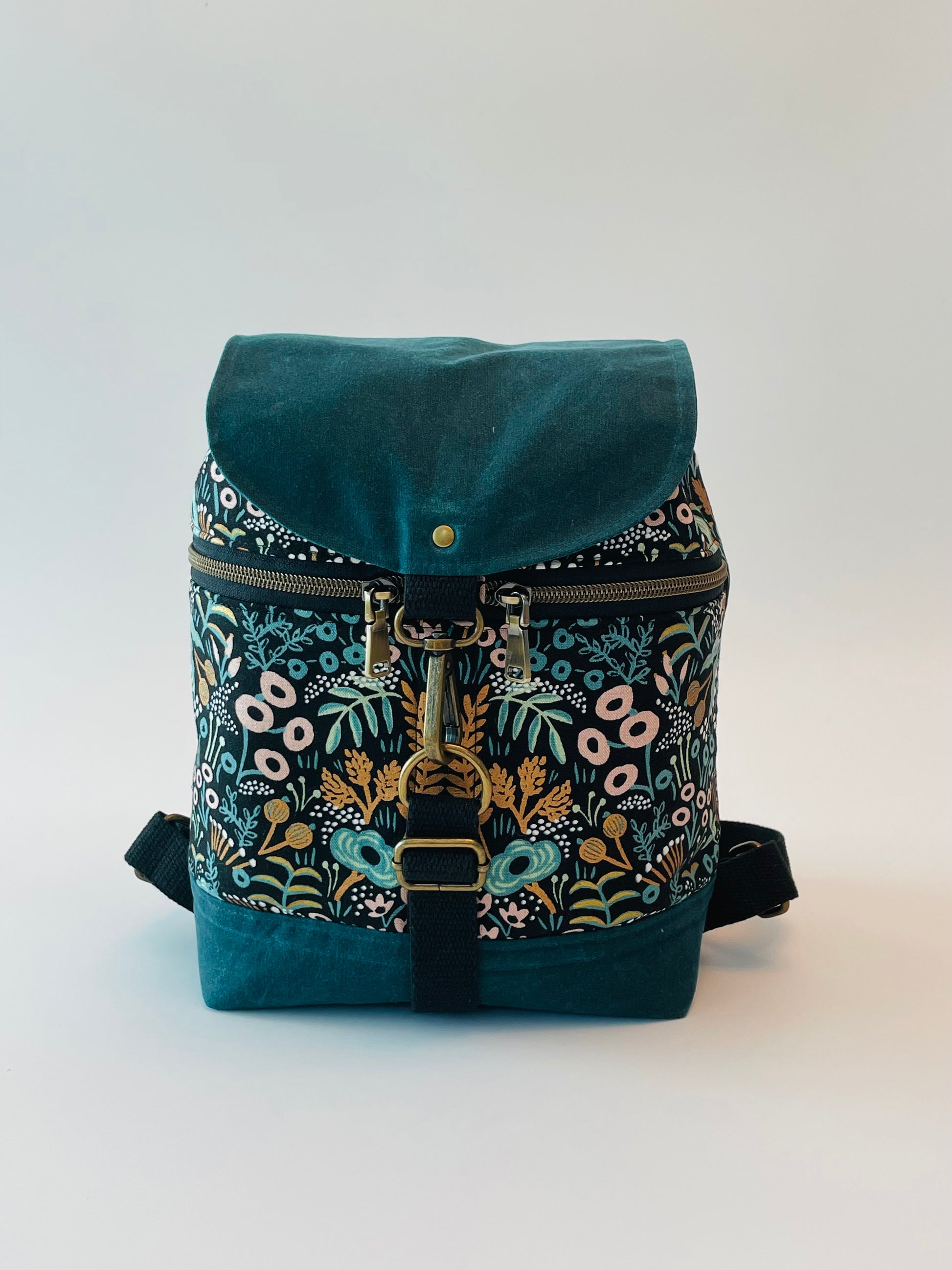 Mini Canvas Backpack, Teal Menagerie