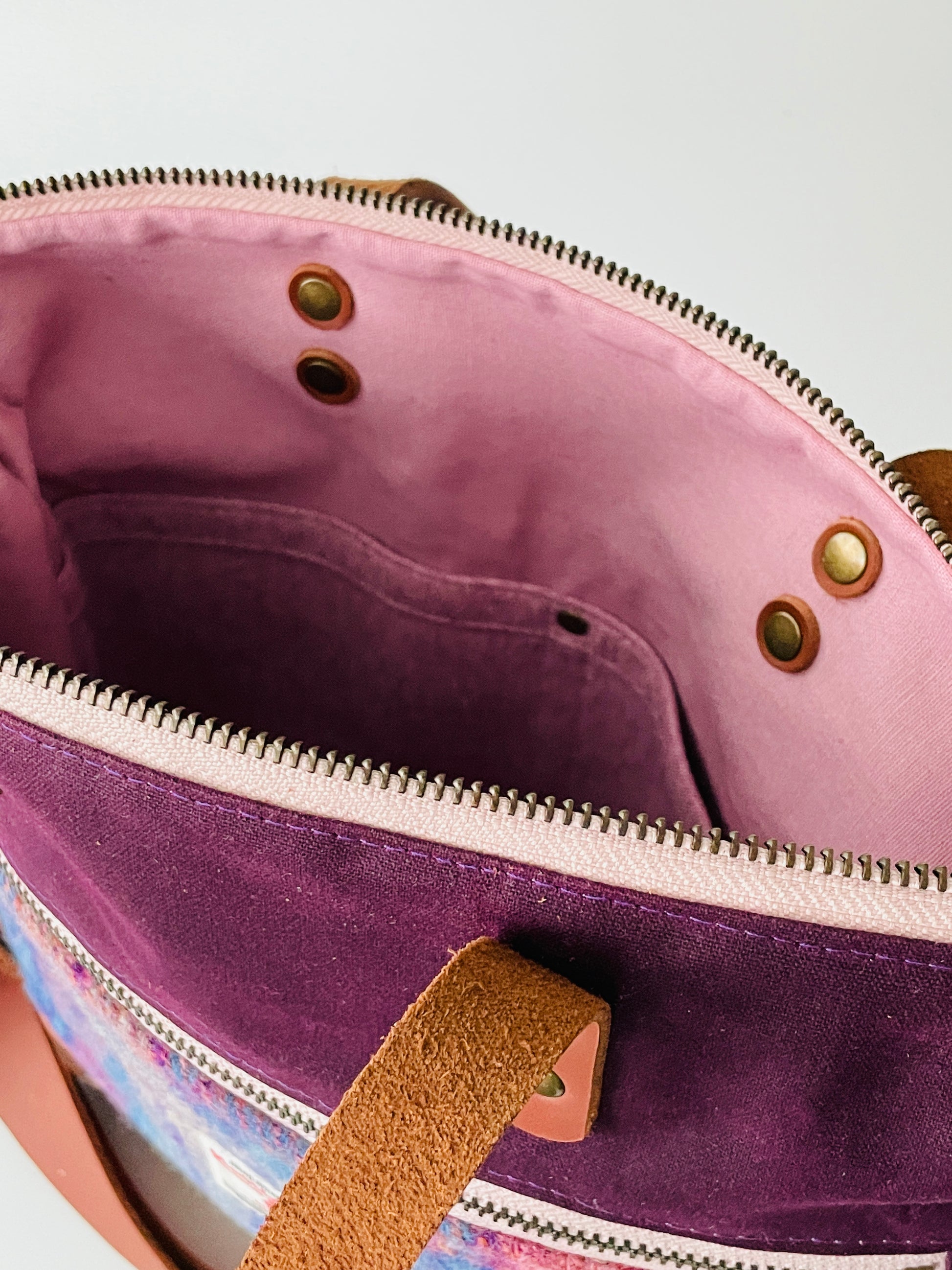 Harris Tweed Crossbody Tote, Purple and Blue Check