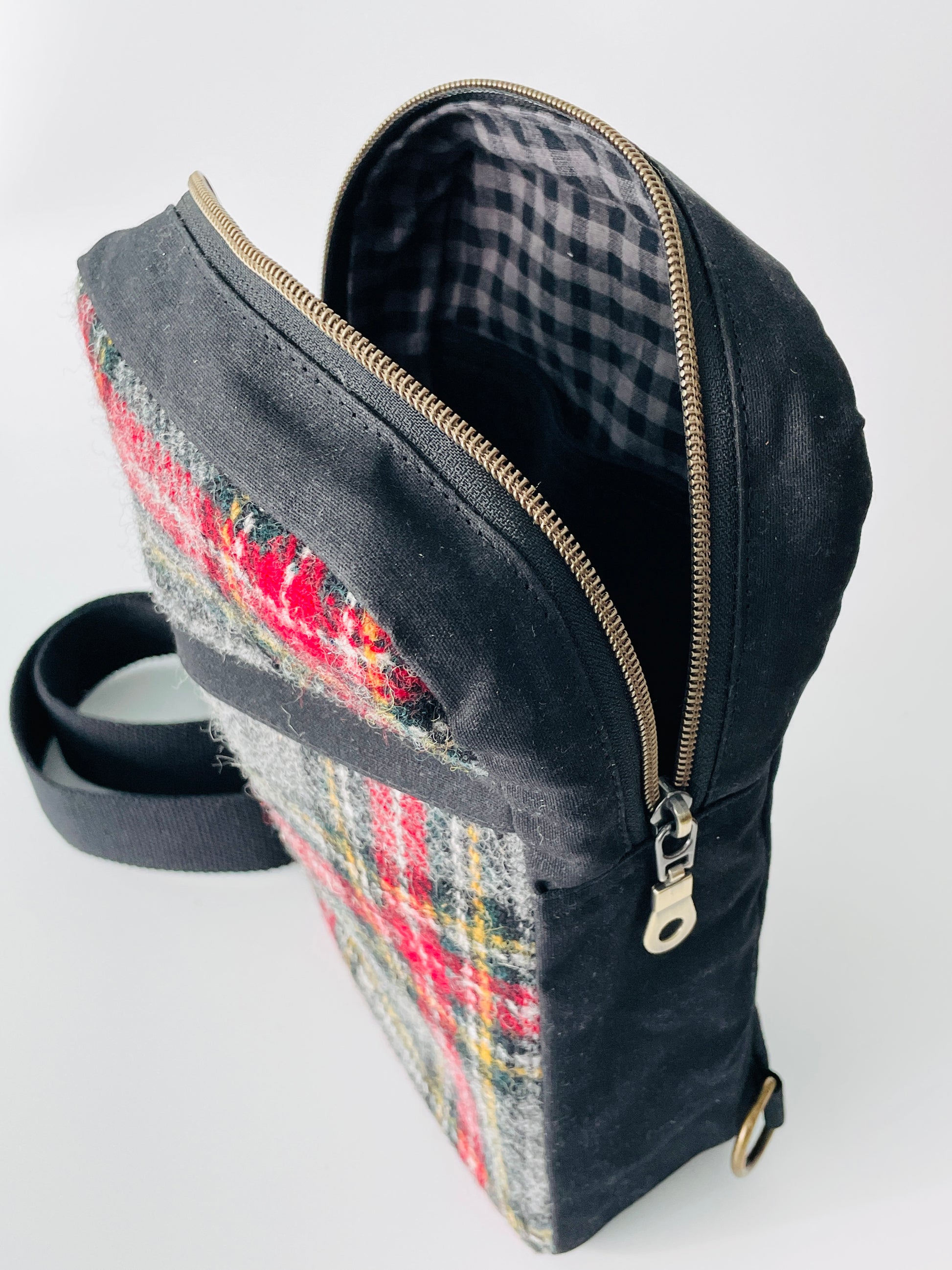 Harris Tweed Sling Backpack, Black Stewart Tartan