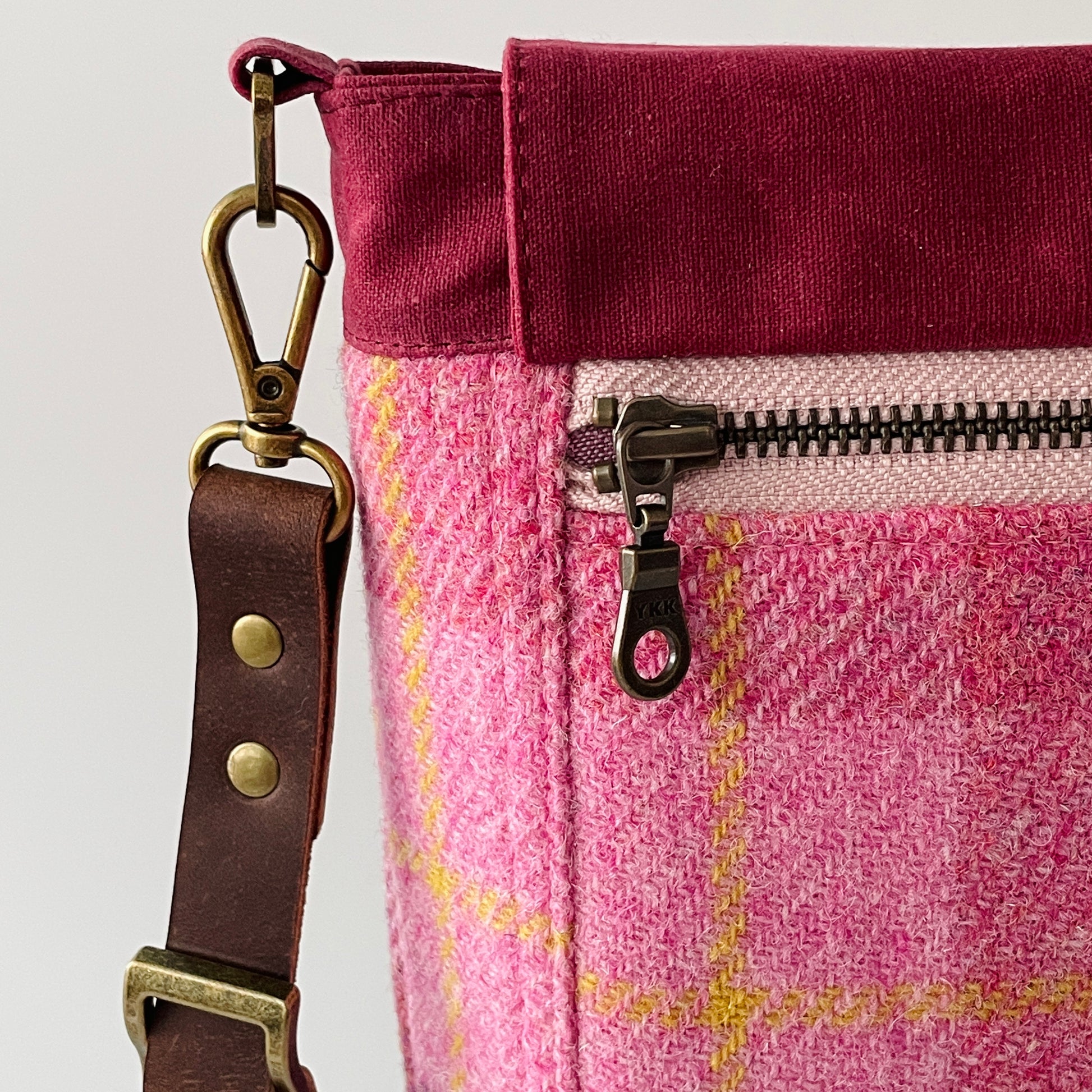This messenger-style crossbody bag will keep all of your small essentials organized when you're on the go. Featuring four pockets, an adjustable strap, and a flap that closes with a side-release buckle. Made with water-resistant waxed canvas, and beautiful Harris Tweed.