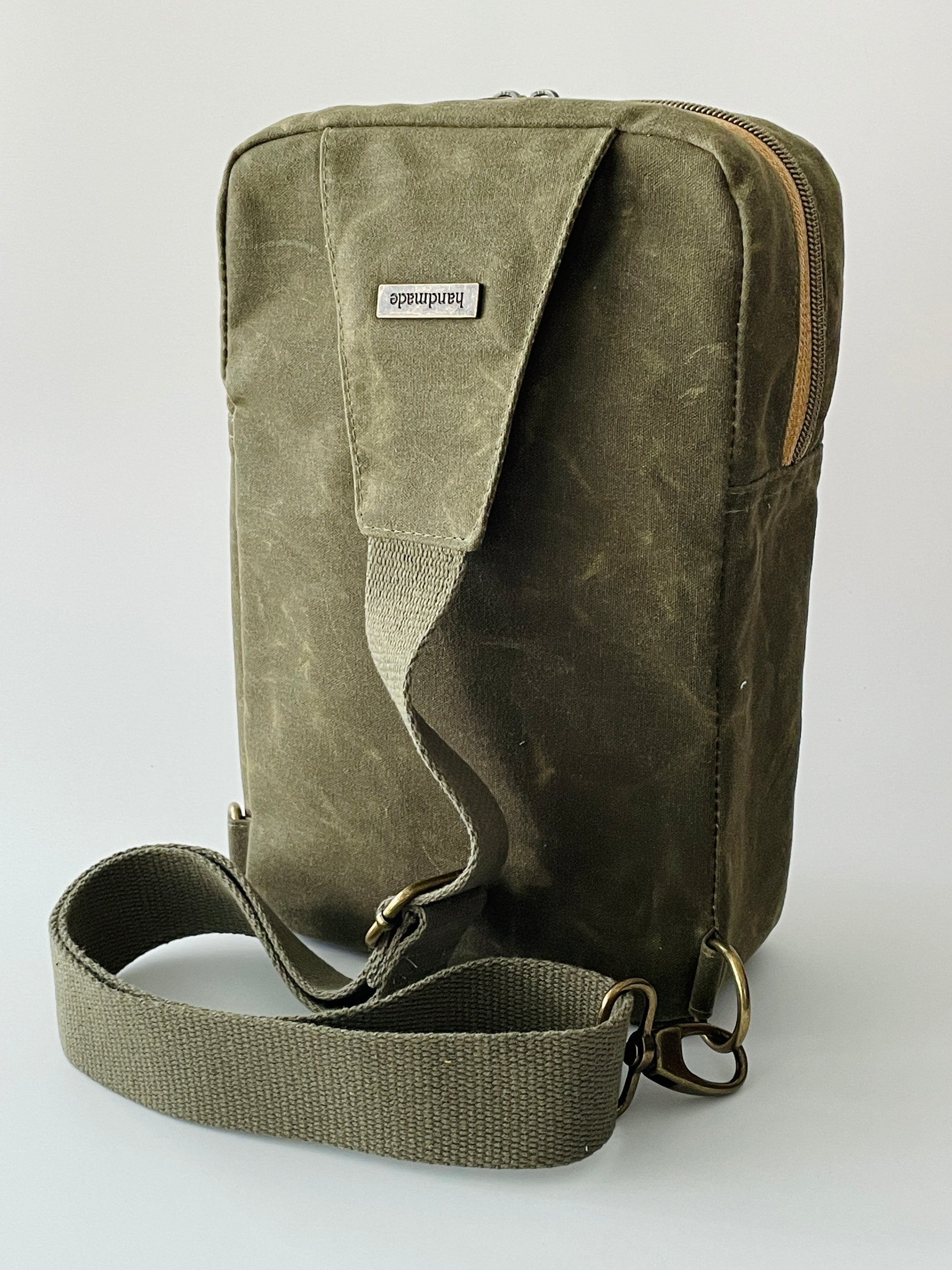 Waxed canvas is a water-repellant fabric with rugged charm. The fabric will have noticeable crease and crinkle marks and develop more character with use.